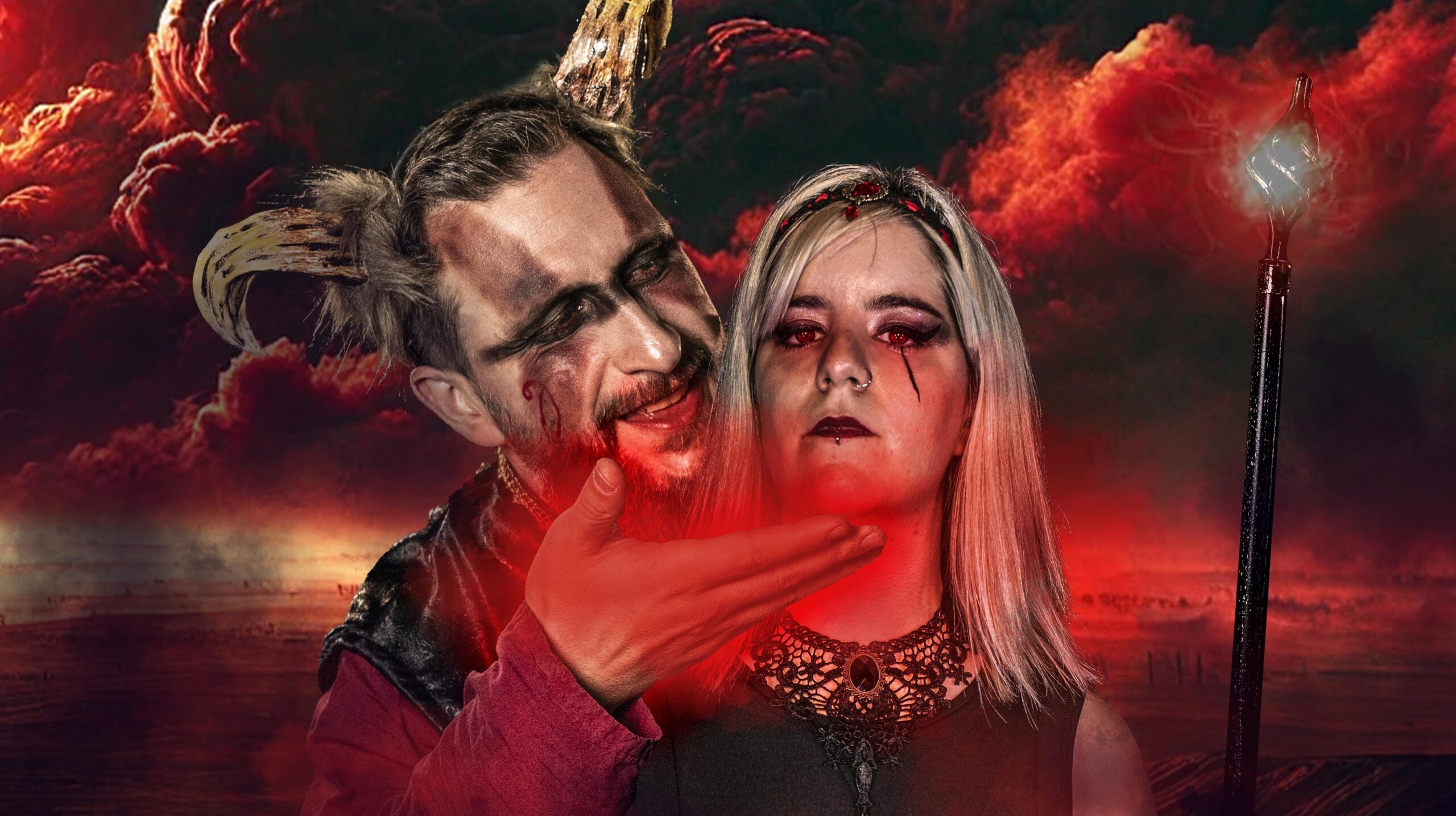 Tanto Amunet como Rodrigo IV se habían quedado petrificados, como si el tiempo se hubiera detenido alrededor de ellos. Sus miradas vacías, congeladas en el aire, reflejaban la poderosa influencia del recién llegado. La magia oscura que se desprendía del báculo había atrapado sus voluntades por completo inmovilizándolos en una prisión invisible.