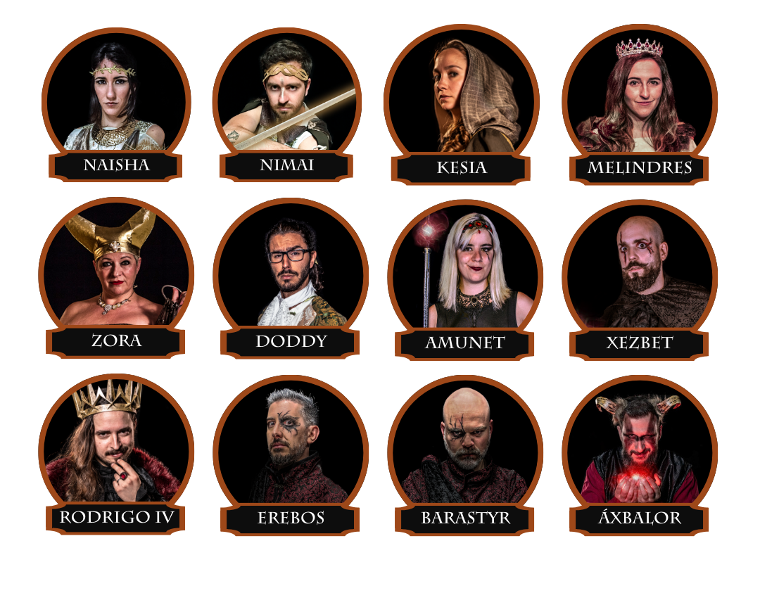 La visión cambió de nuevo. Amunet apareció ante sus ojos envuelta en un manto de niebla oscura. Su fría belleza y su poder maligno emanaban de cada poro de su piel. Xezbet, su consorte, permanecía cerca observando con su inquietante mirada, buscando algo más allá de lo visible. Junto a ellos estaba Rodrigo IV, el padre de la oscura emperatriz y antiguo rey que antaño había gobernado todo el reino. Sin embargo, lejos habían quedado sus años de bonanza, pues su semblante, ahora oscurecido, mostraba el poder corrupto del Inframundo. Cerca aguardaban en silencio Erebos y Barastyr, sus leales y oscuros consejeros. Las sombras parecían envolverlos mientras ellos esbozaban dos maléficas sonrisas.