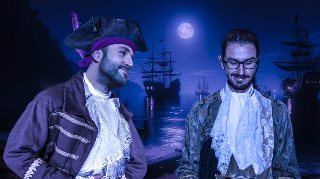 Doddy se acercó al barco mientras este atracaba y pudo ver los uniformes, aunque algo raídos, del antiguo cuerpo de Hombres del Rey que un día sirvieron a su bisabuelo, el rey Rodrigo V. En el centro del puente de mando observó a un viejo lobo de mar que ocultaba parte de su cabello rizado y gris bajo un gorro pirata algo raído. Llevaba ropajes de marinero y tenía el rostro moreno y cuarteado, como si hubiera pasado años en alta mar. Su barba era abundante y entrecana, pero su cuerpo aún fuerte y su imponente porte hacían de él un personaje extrañamente carismático. Además, Doddy pudo comprobar cómo todos los soldados parecían tratarle con un respeto especial. Casi hipnotizado por el carisma de aquel marinero, el rey subió por la pasarela y se plantó frente a aquel hombre con mirada curiosa.
