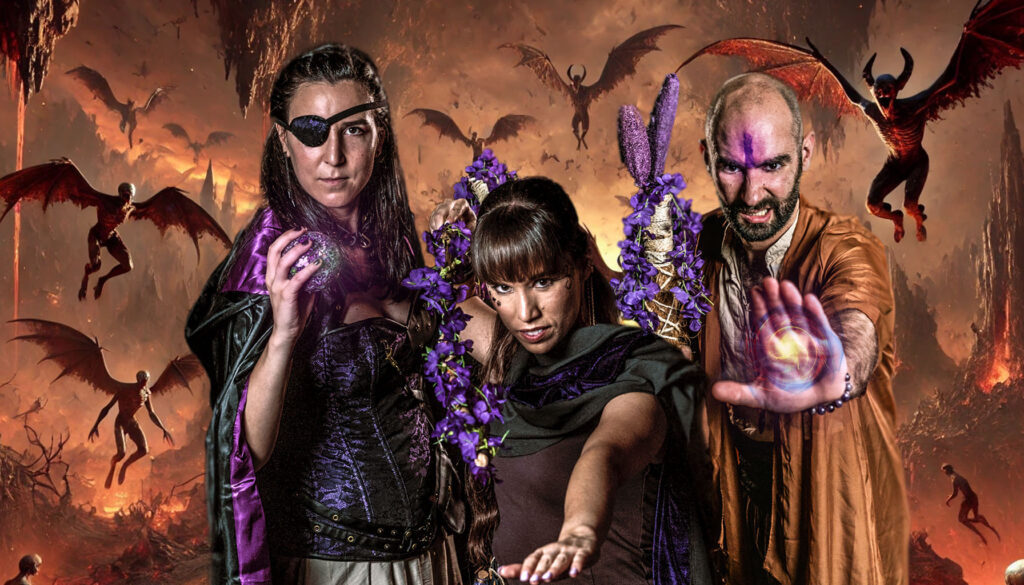 La horda de demonios empezó a cerrar el cerco sobre los tres cazadores. Desde el cielo, un diablo alado les observaba. Tras esbozar una sonrisa malévola, se lanzó sobre ellos en picado con los ojos inyectados en sangre. Ramia, la guardabosques renegada, alzó la varita con un gesto sucinto pero energético y lanzó un rayo certero que atravesó el ala derecha de aquel ser. La expresión del demonio cambió de repente cuando se desplomó aplastando a varios diablillos cuyos cuerpos ya no volvieron a moverse.
