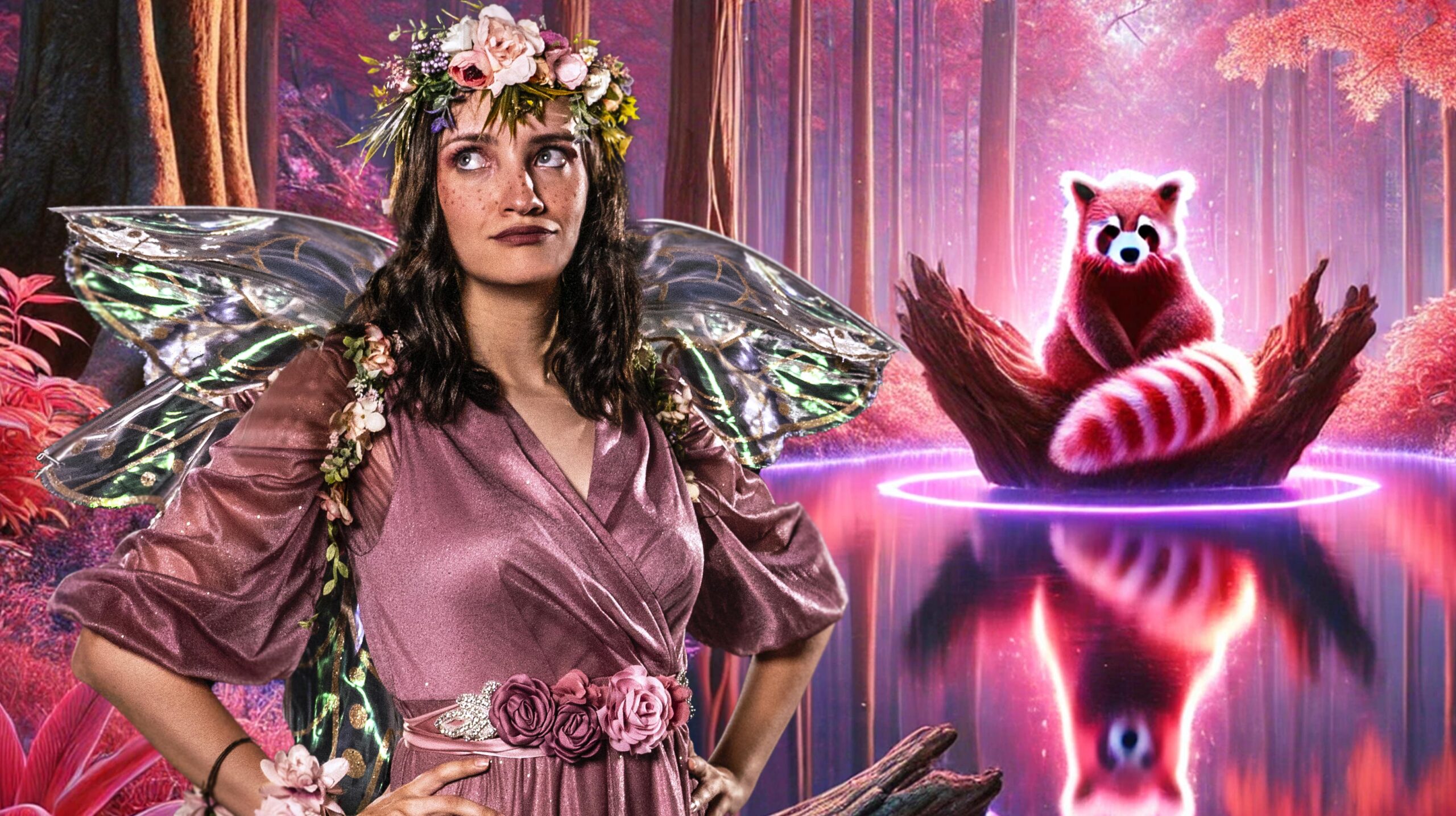 Su pelaje era fuego suave: rojo otoñal, anaranjado de ocaso, con vetas oscuras como corteza. Sus ojos, grandes y sabios, parecían contener en su reflejo todos los recuerdos del mundo faérico. No caminaba: danzaba. No hablaba: cantaba con palabras. Y cuando sonreía, la naturaleza entera se inclinaba a escuchar.